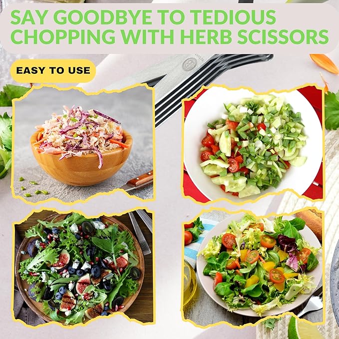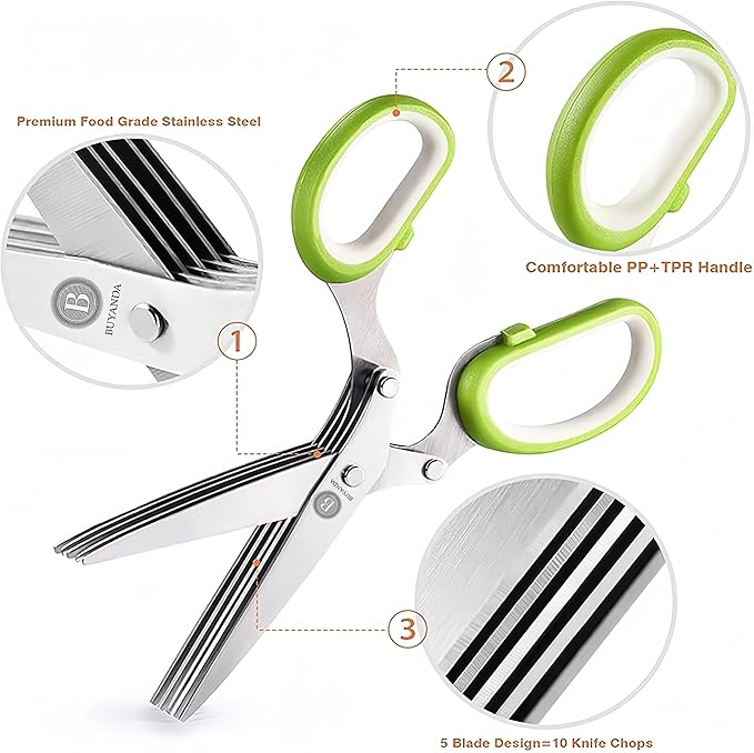 5 Blade Herb Scissors - Multipurpose Stainless Steel Kitchen Scissors for Salad and Vegetables