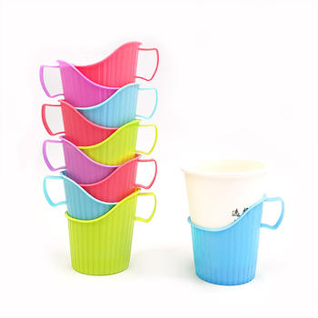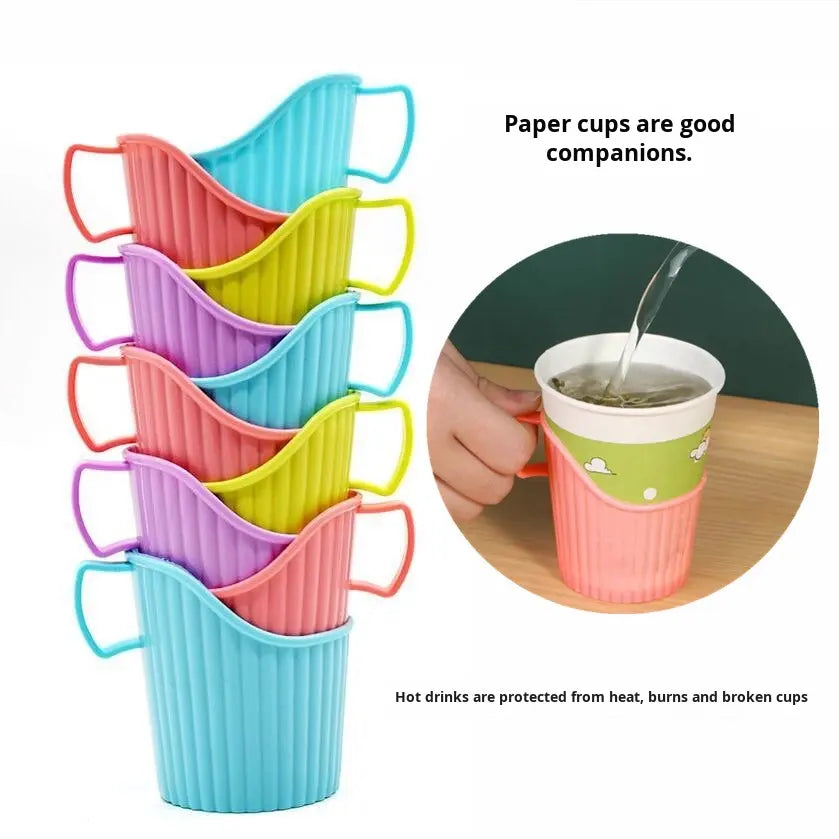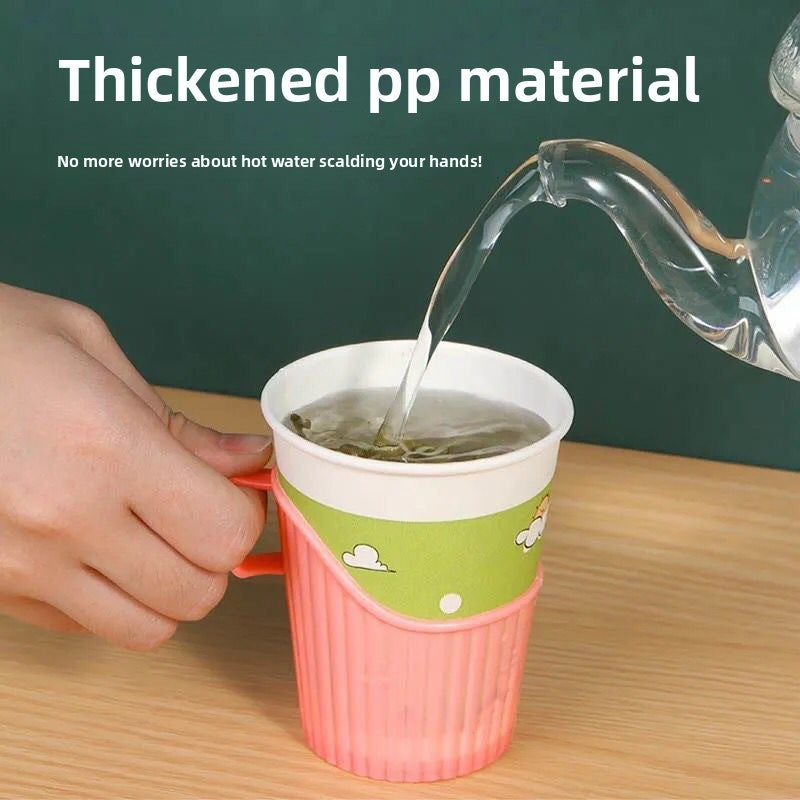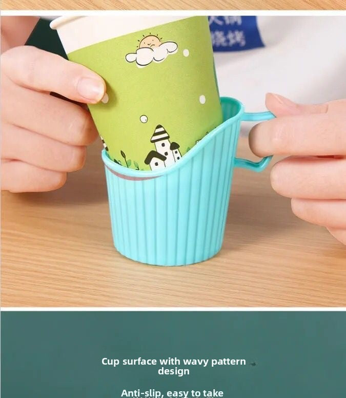 Eco-Friendly Disposable Thickened Plastic Cup Holder with Convenient Handle Anti-Scalding Heat-Insulating for hot Drinking