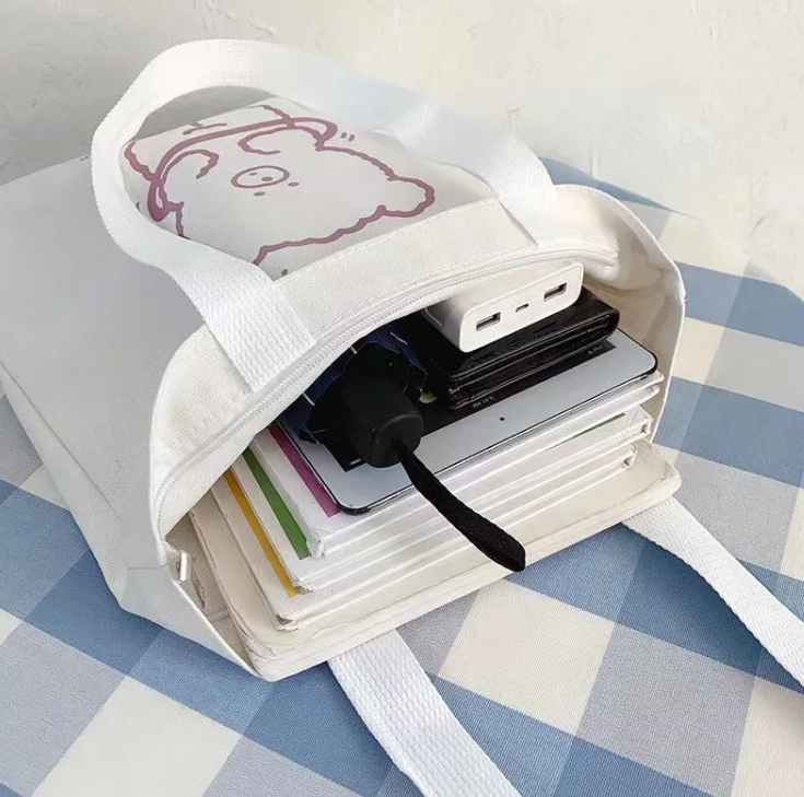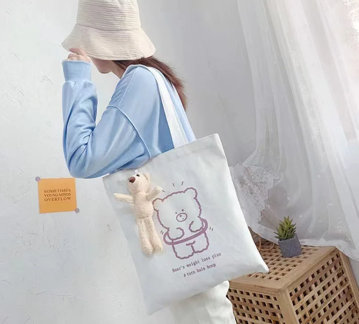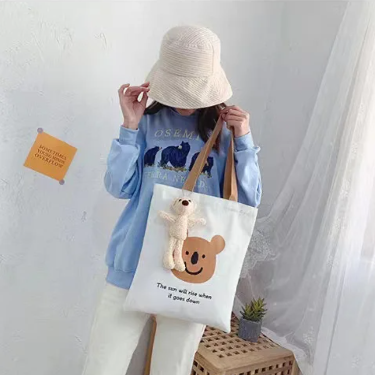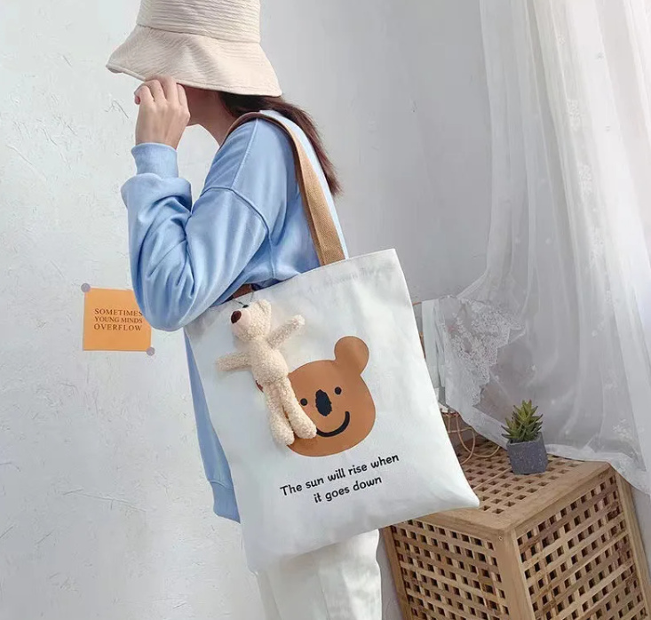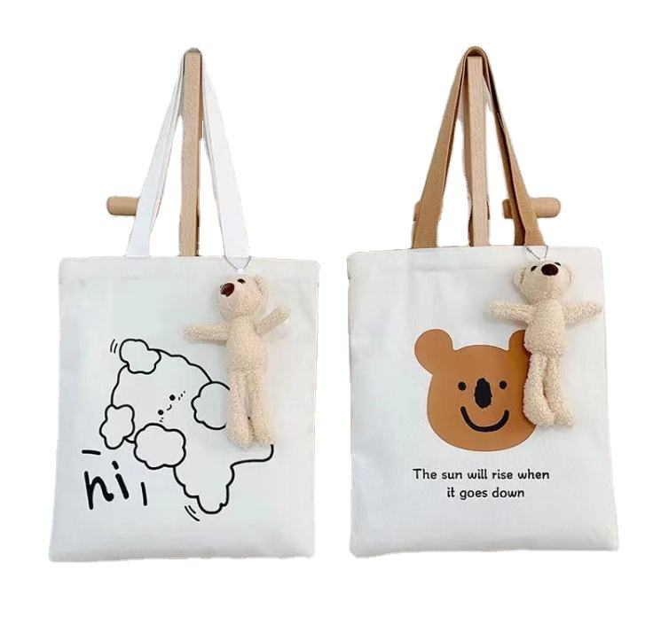 Large Shoulder Bags Cotton Student Girl Women's Custom Bear Canvas Tote Bag