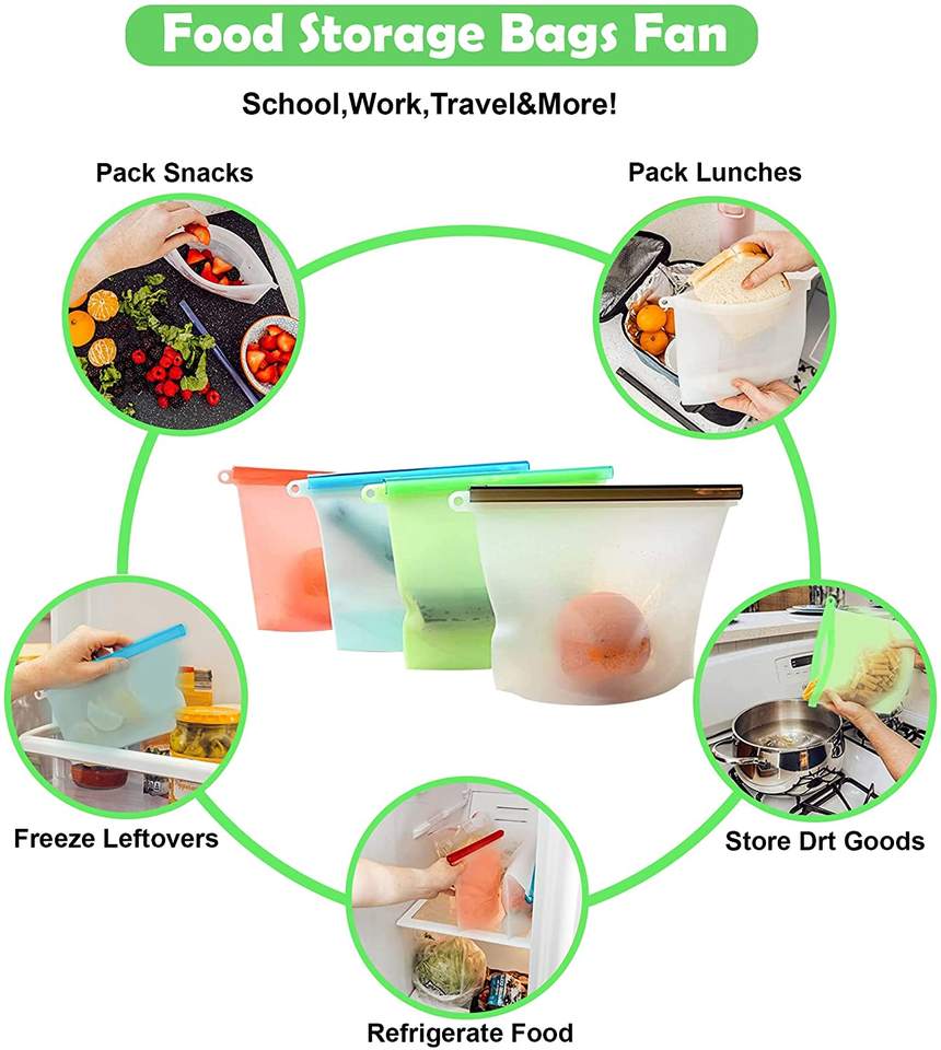 Stay organized and go green with these reusable silicone storage bags—perfect for everyday kitchen storage and on-the-go meals!