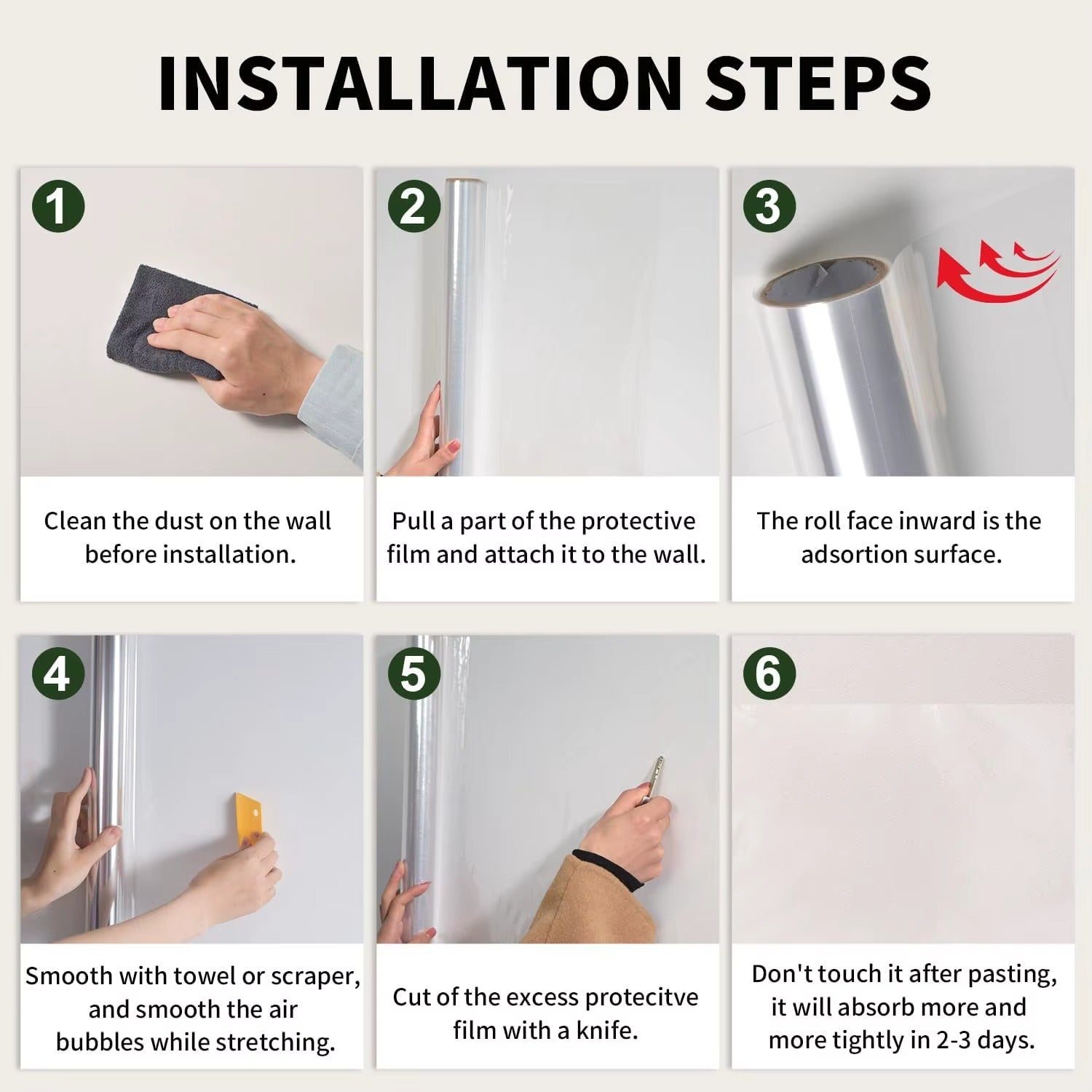 ❣EASY TO CLEAN: Whether it's your favorite pet spilling food on the protective film while eating, dirty footprints from your child's entertainment or grease residue from the kitchen - whatever dirt is on the protective film, you can simply wipe it off with water and a damp cloth. This will keep your walls fresh, clean and spotless!