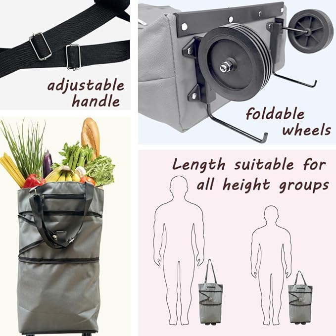 Easy to Carry: Sturdy wheels + ergonomic handle allow smooth rolling, making shopping comfortable and convenient.